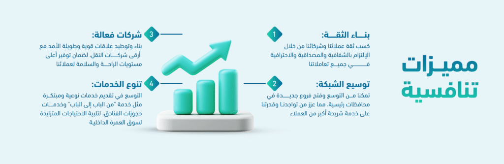 النقل المريح ، السكن المميز، الخدمة المنافسة ، العلاقة التجارية المميزة ، التوجه الاستراتيجي.